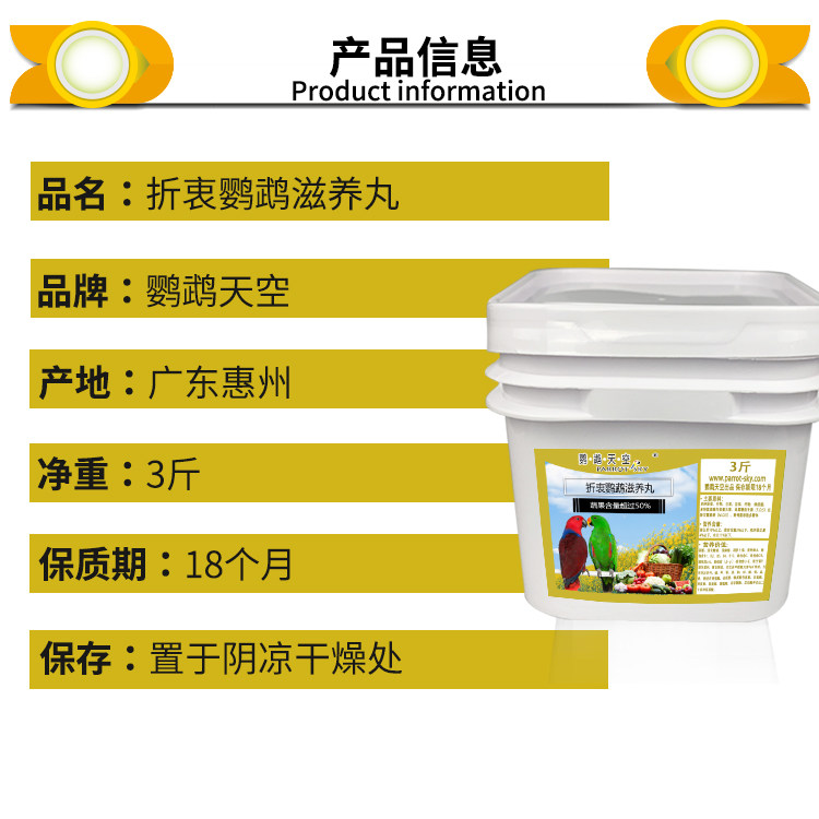 鹦鹉天空灰鹦鹉专用滋养丸饲料灰鹦鹉饲料鹦鹉鸟粮鸟食滋养丸3斤