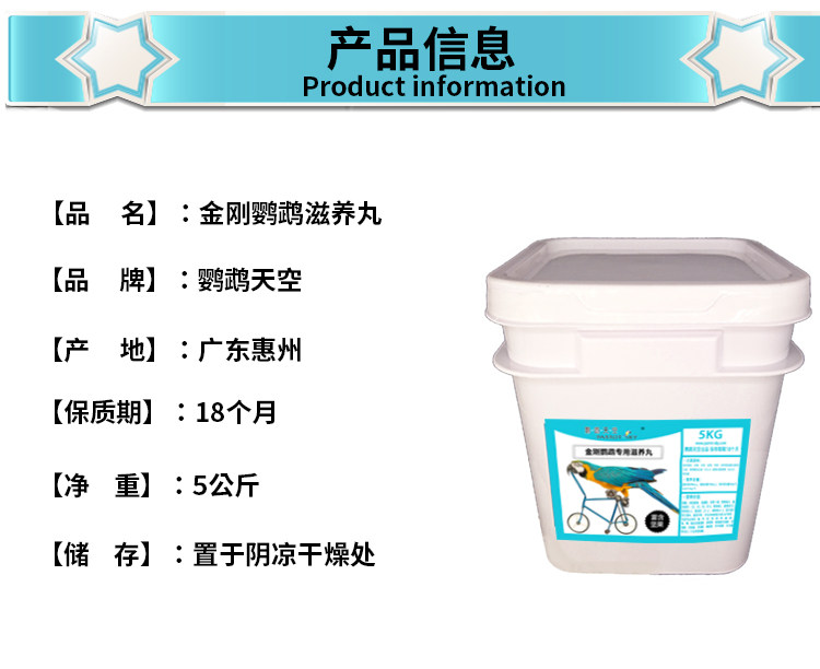 鹦鹉天空大型金刚鹦鹉滋养丸蓝黄绿翅五彩金刚鹦鹉鸟食粮饲料10斤